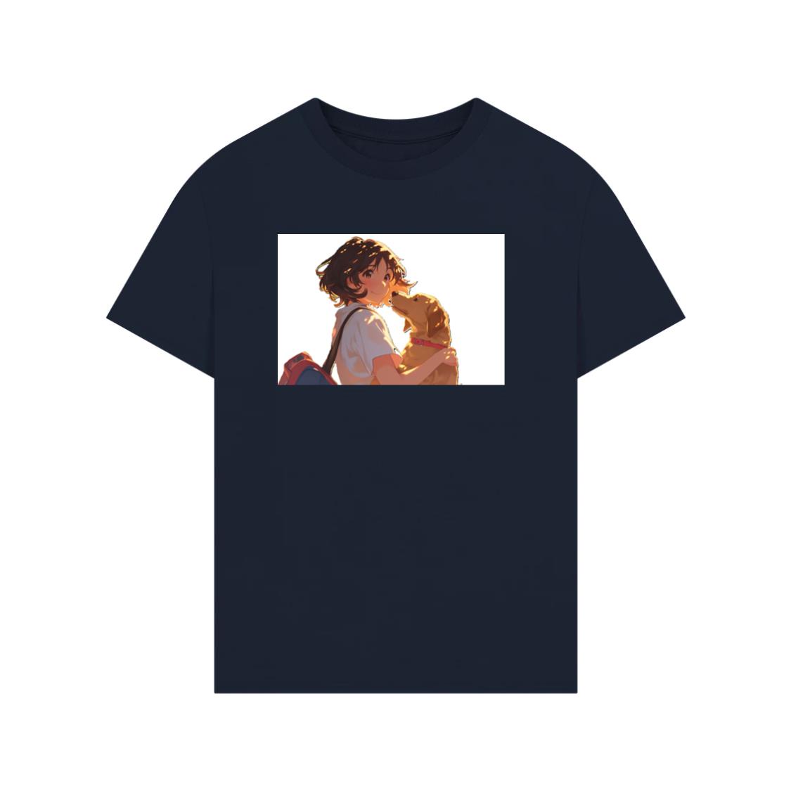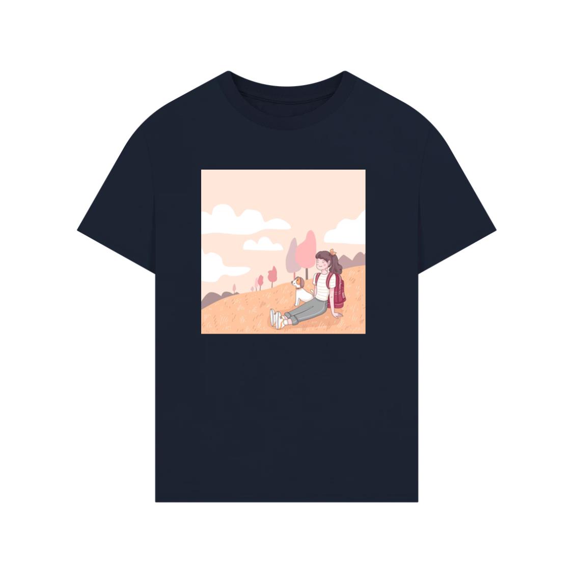 • A Girl and Her Dog Pause to Appreciate the Beauty of a Peaceful Hillside T-Shirt
