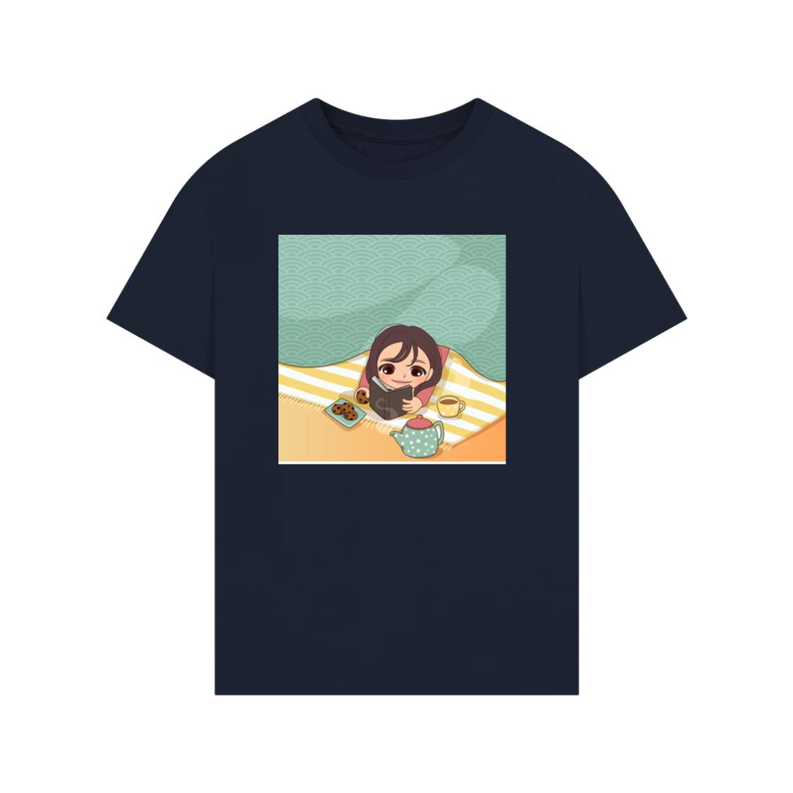 A Girl Enjoys a Story with Tea and Cookies in a Cozy Space T-Shirt
