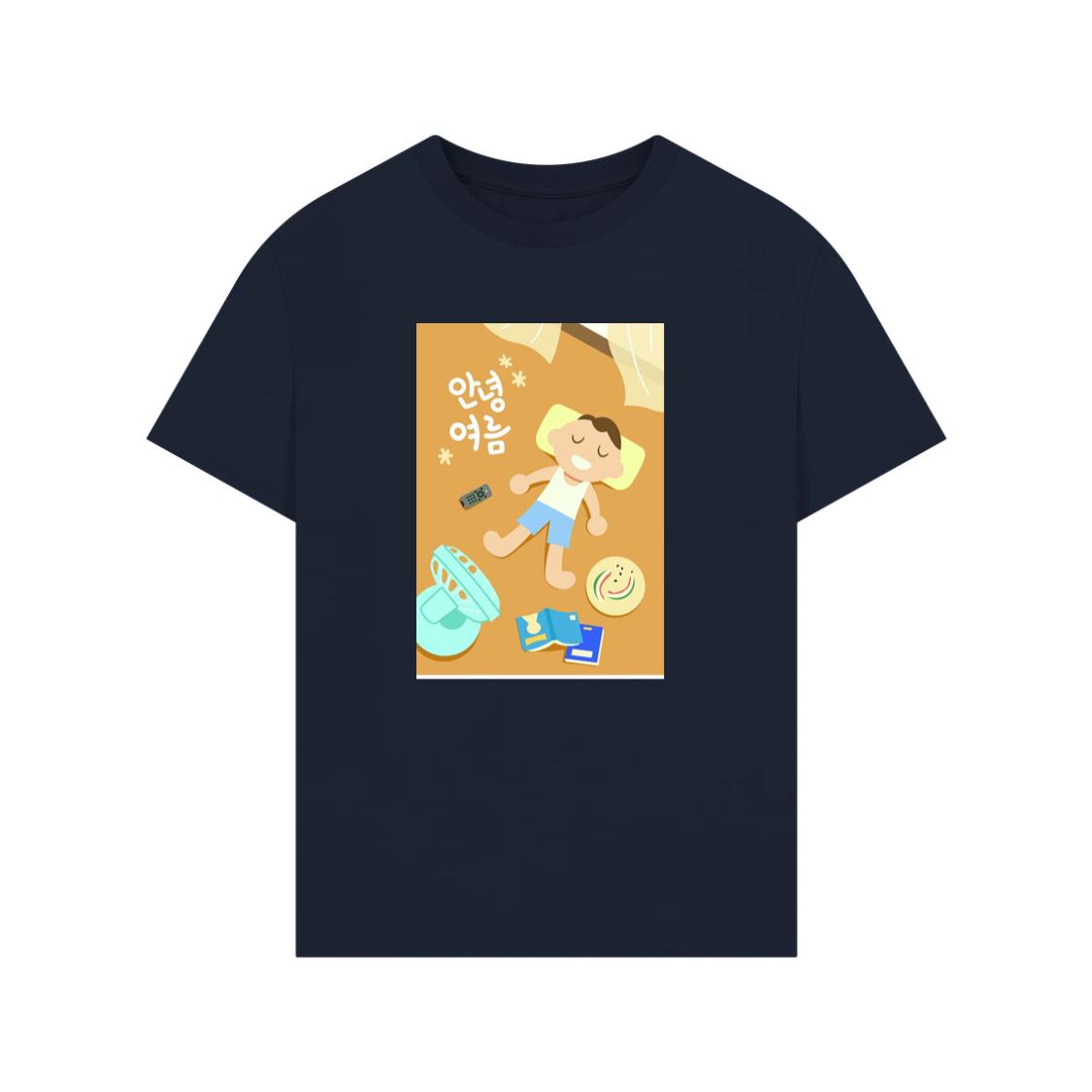 • A Laid-Back Illustration with a 'Hello Summer' Message and Travel Items T-Shirt
