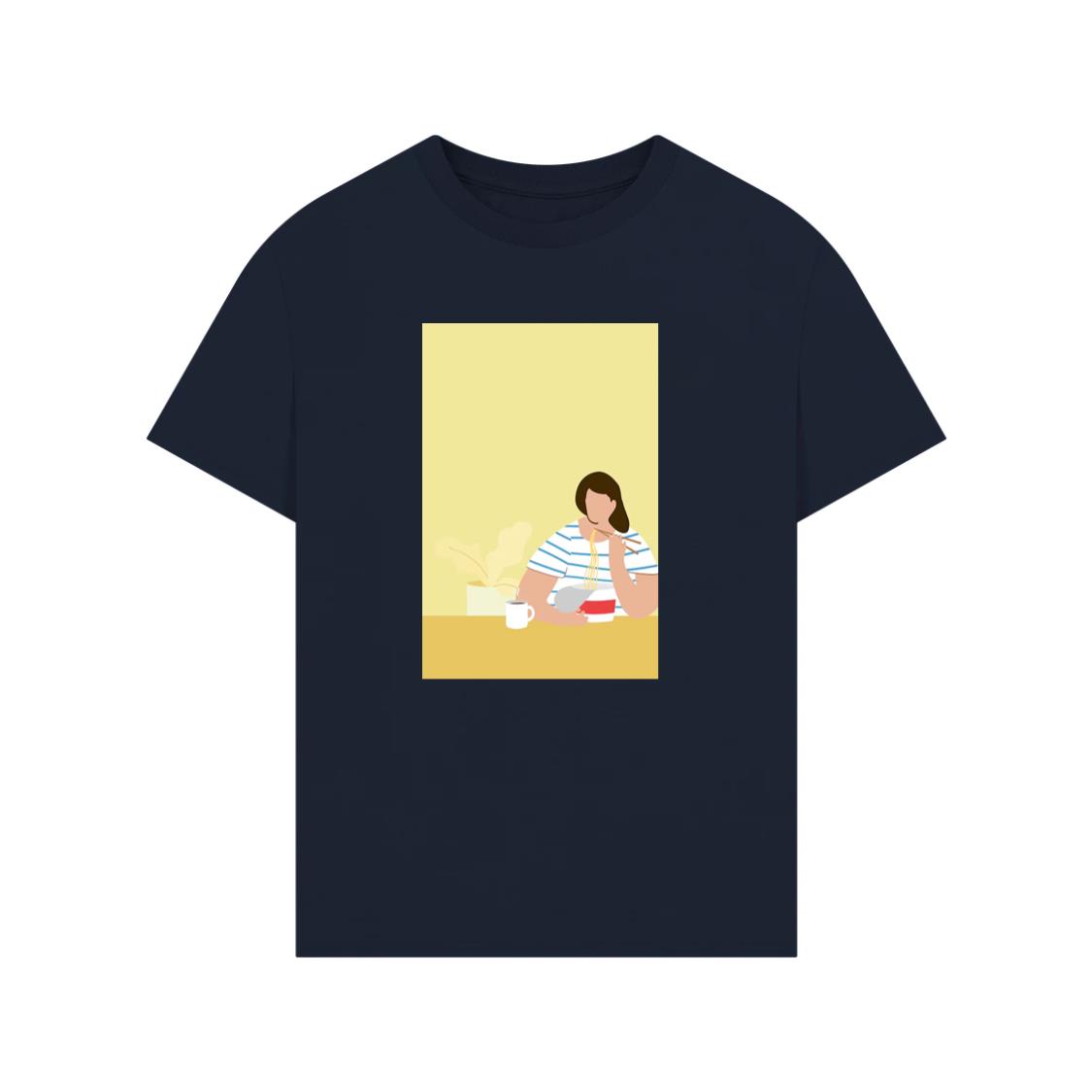 • A Woman Enjoying a Bowl of Noodles and a Hot Drink T-Shirt